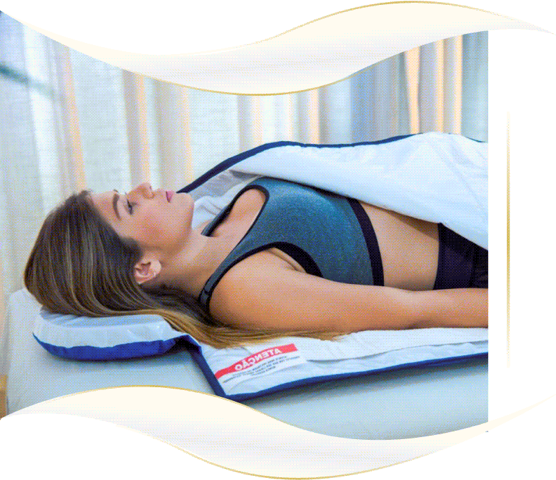 El funcionamiento de esta manta consiste en elevar la temperatura corporal para así sudar y quemar calorías, ya que cuando el cuerpo suda está usando energia y quemando calorías. Con la manta también activamos la circulacion sanguinea y aceleramos el metabolismo.